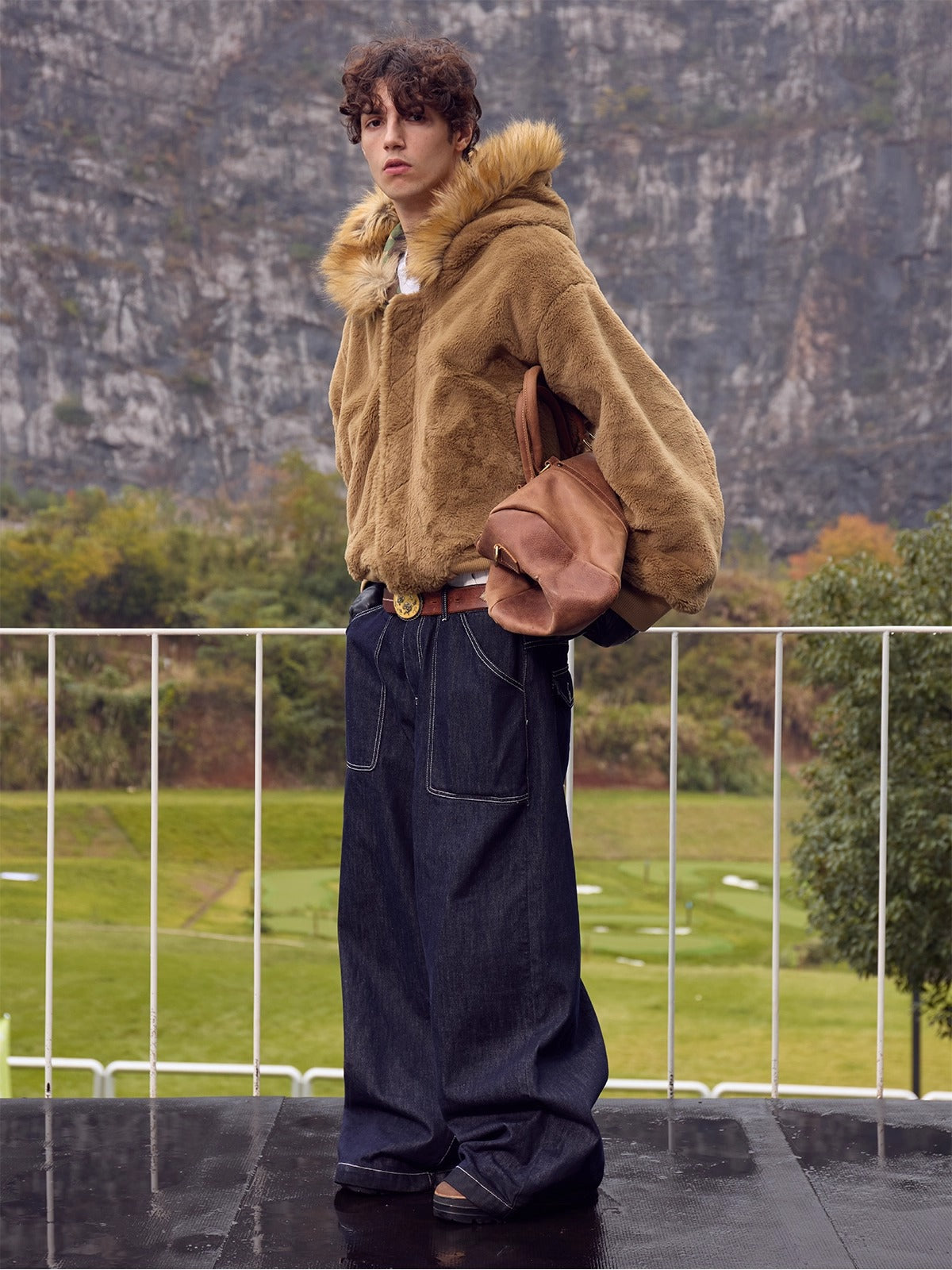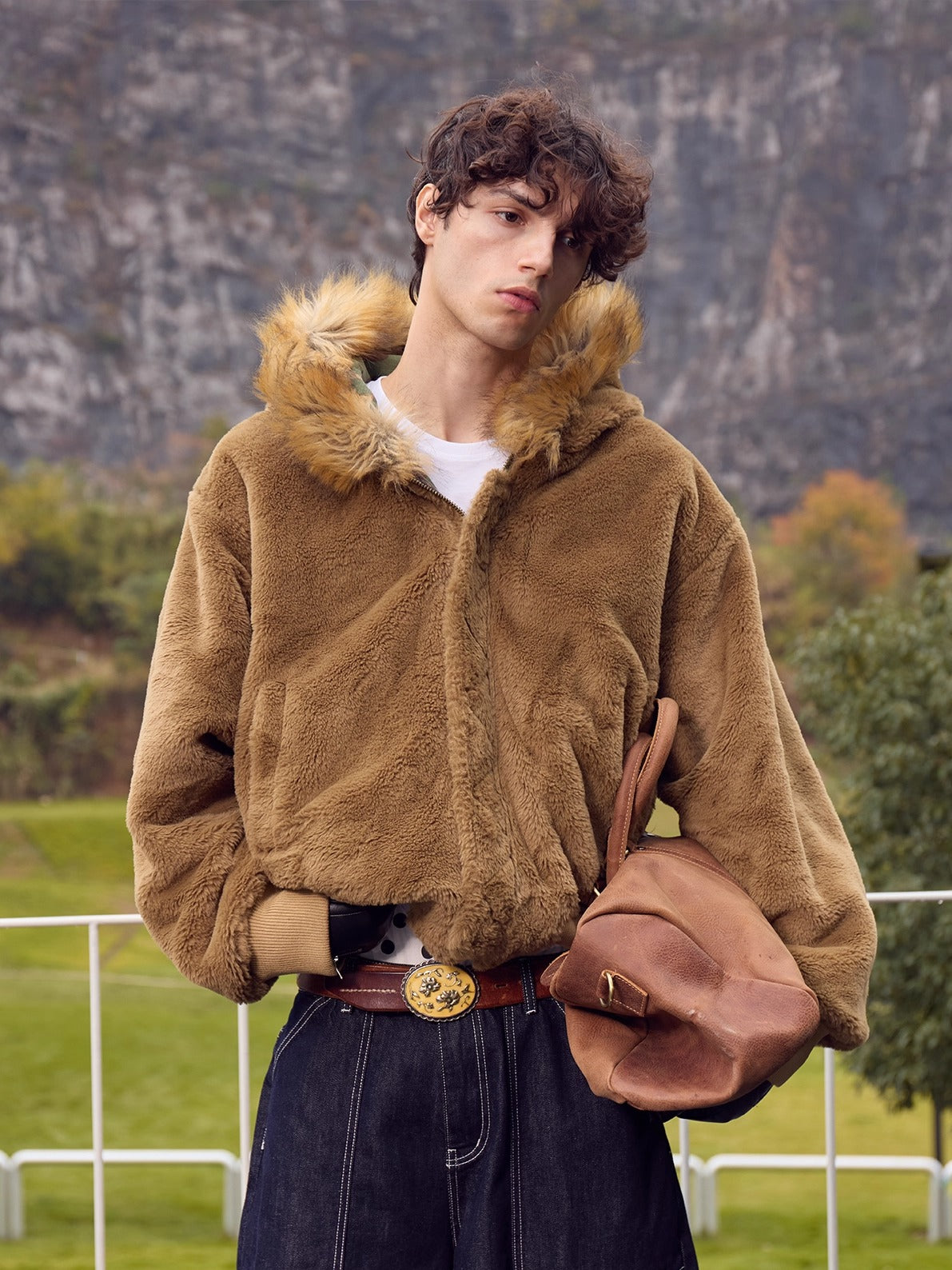 Reversible design adapts to various wearing needs. Heavyweight, ultra-soft rabbit fur lining, naturally washed, distressed, camouflage pattern, short and wide fit that avoids bulkiness.