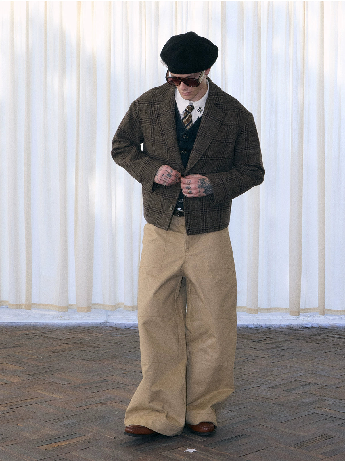 InsGale 25AW 復古千鳥格紋短寬西裝外套