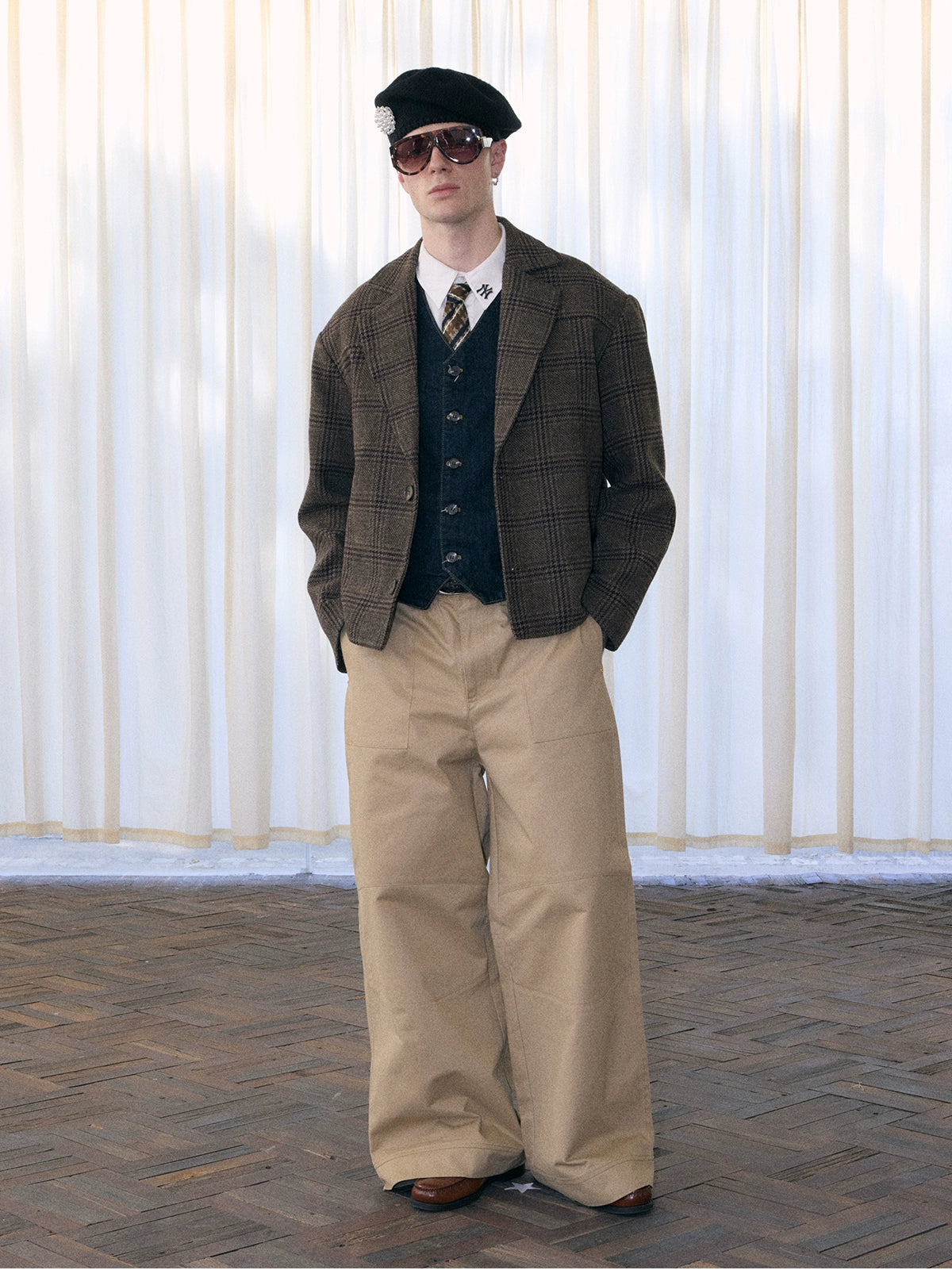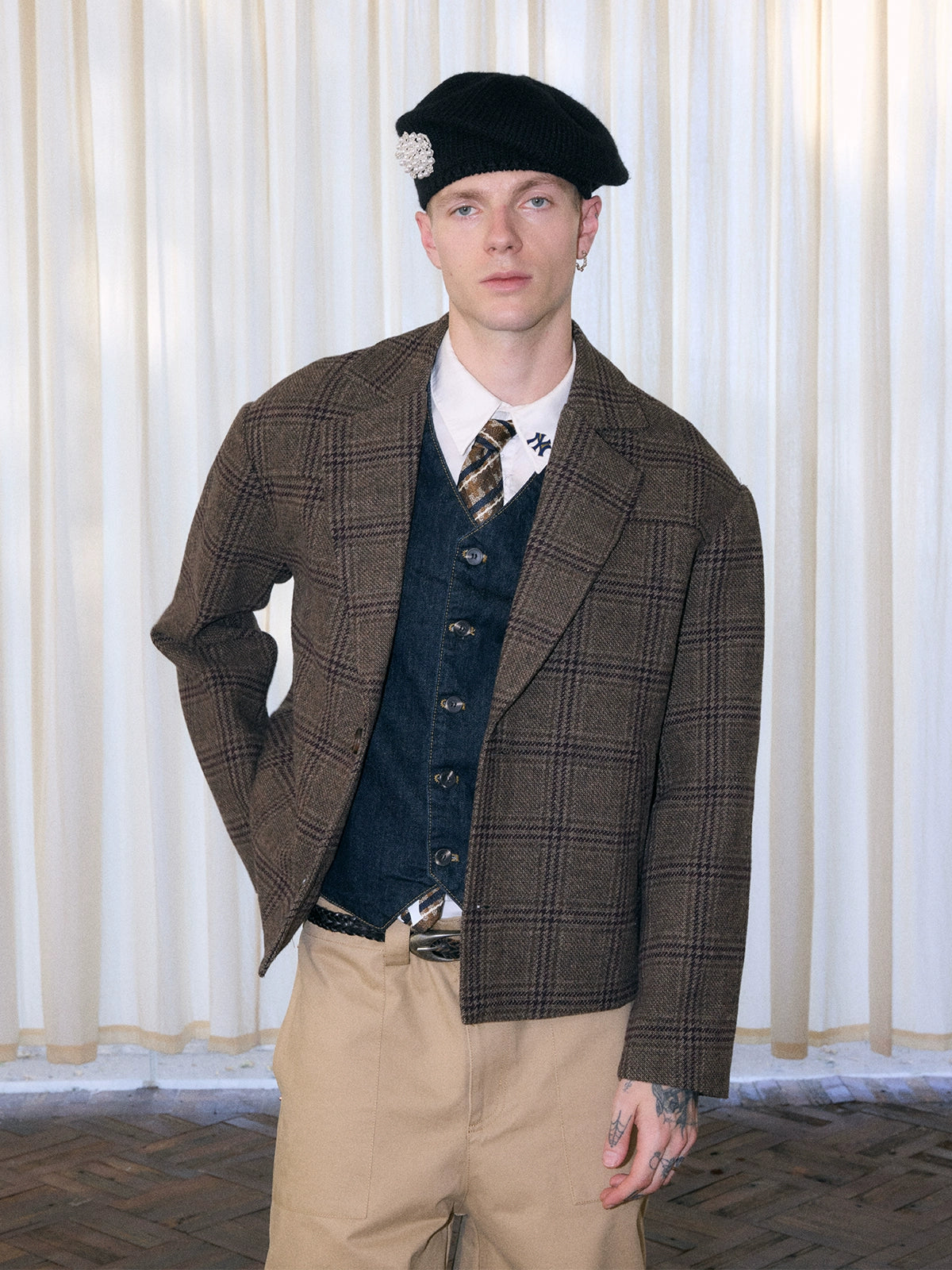 棕色複古千鳥格紋,增加了復古優雅氣質。