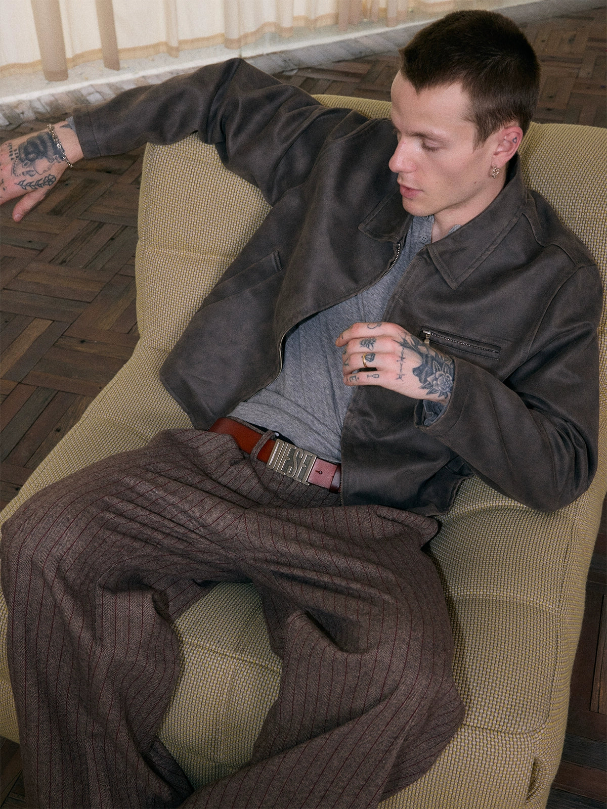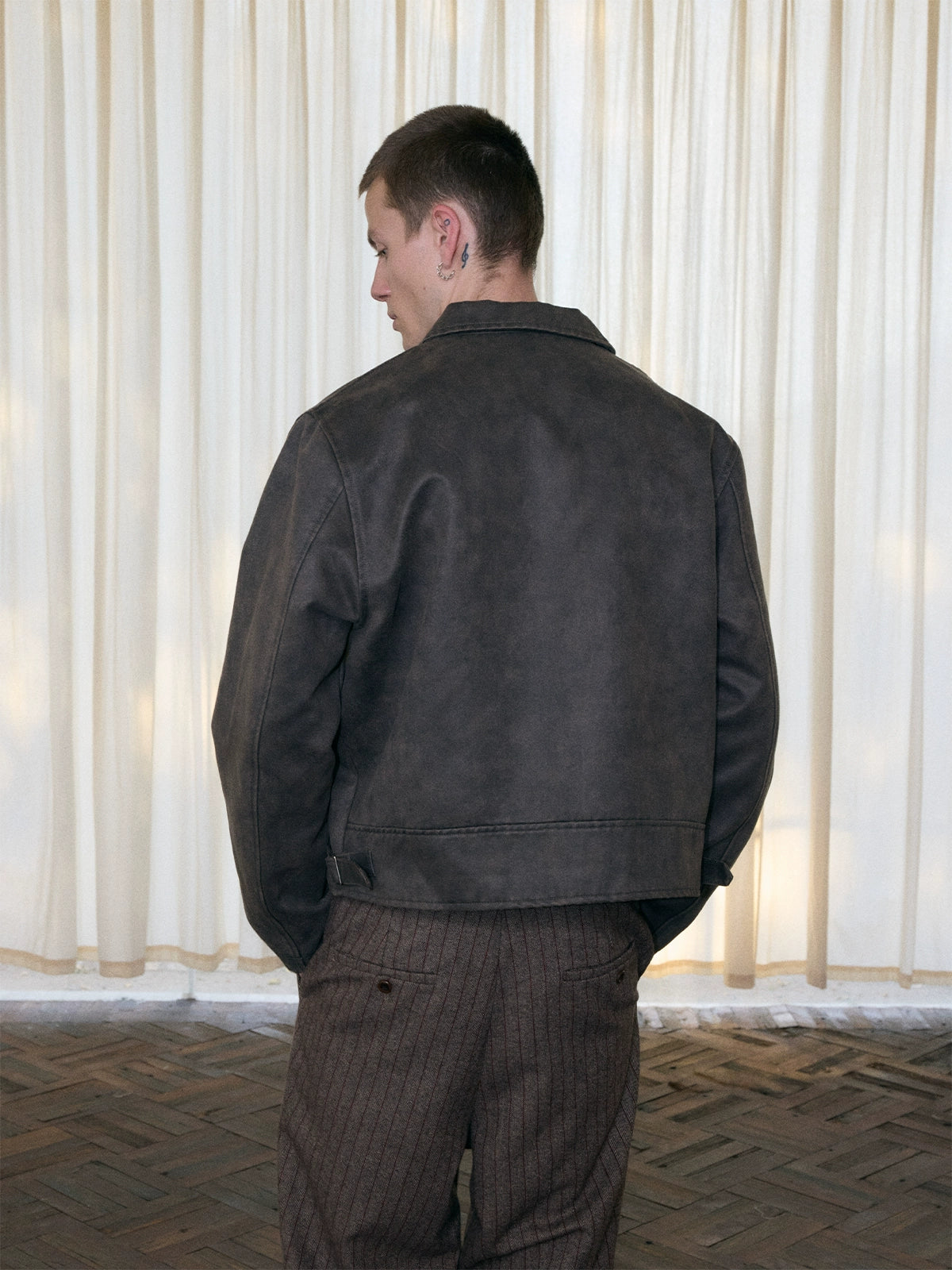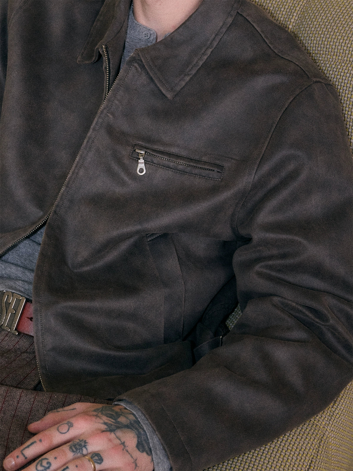 InsGale 25AW 水洗做舊短寬麂皮夾克