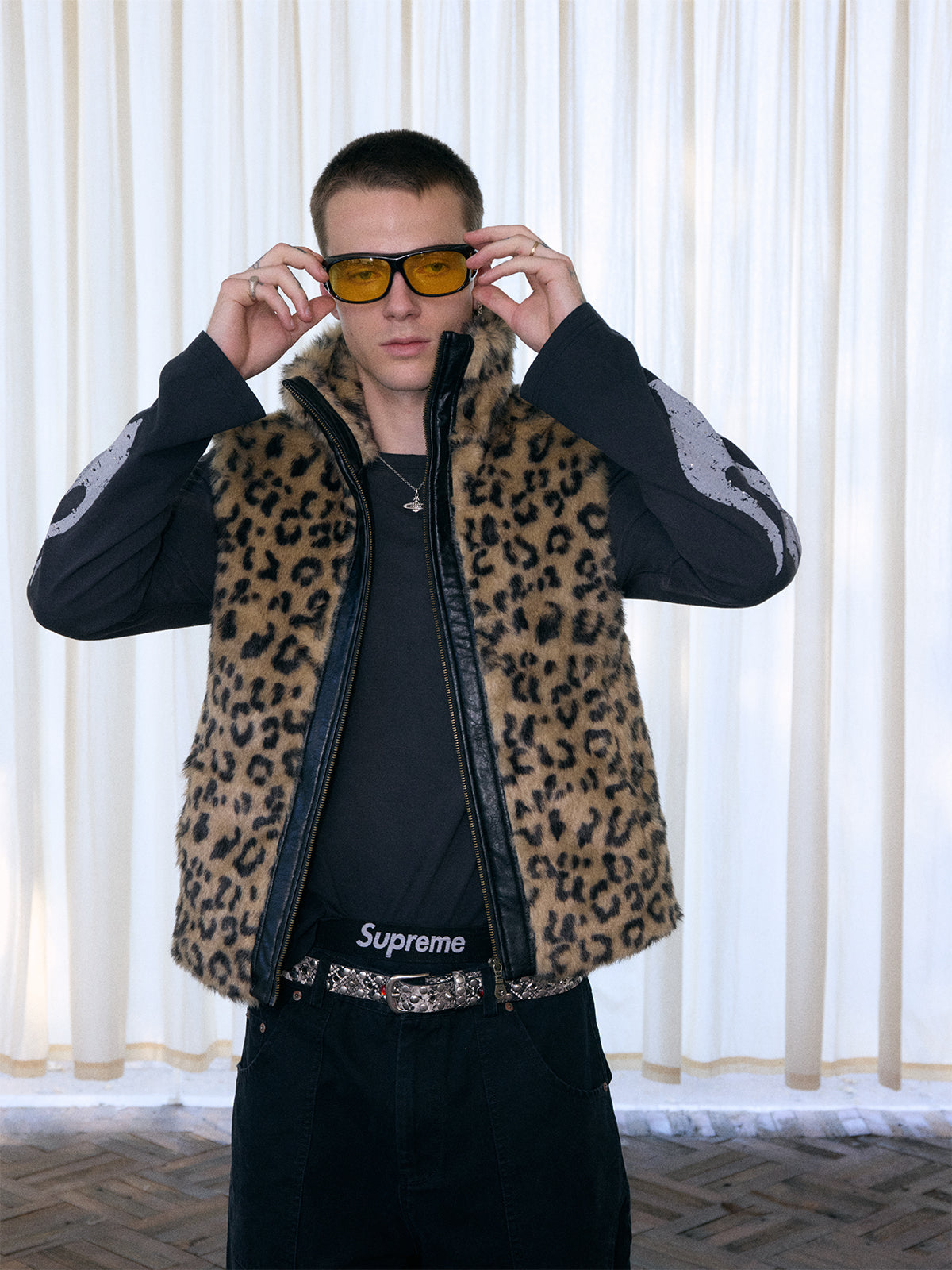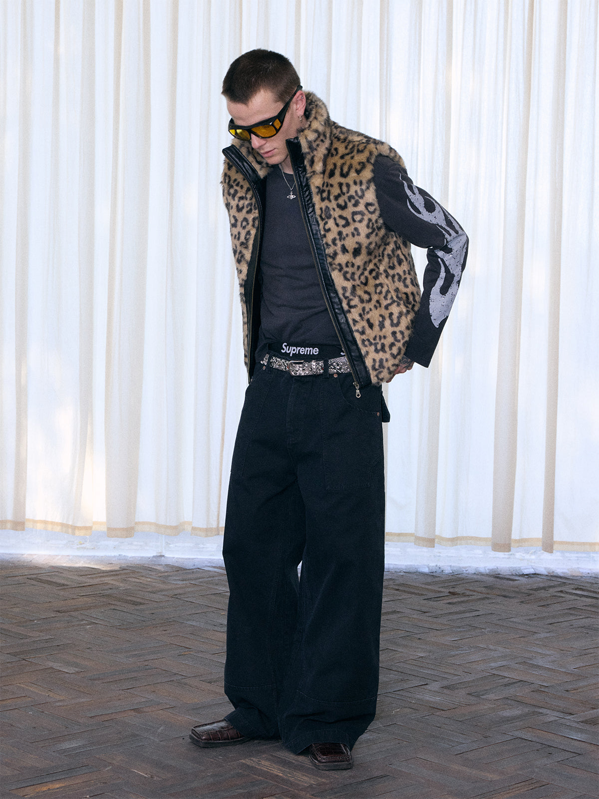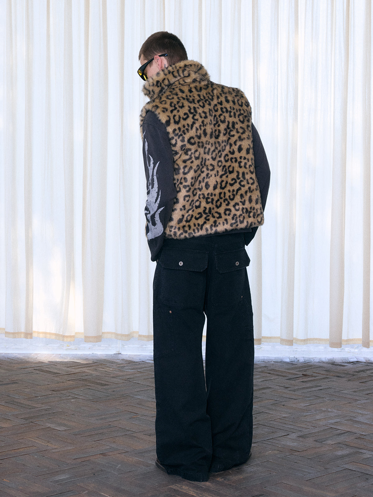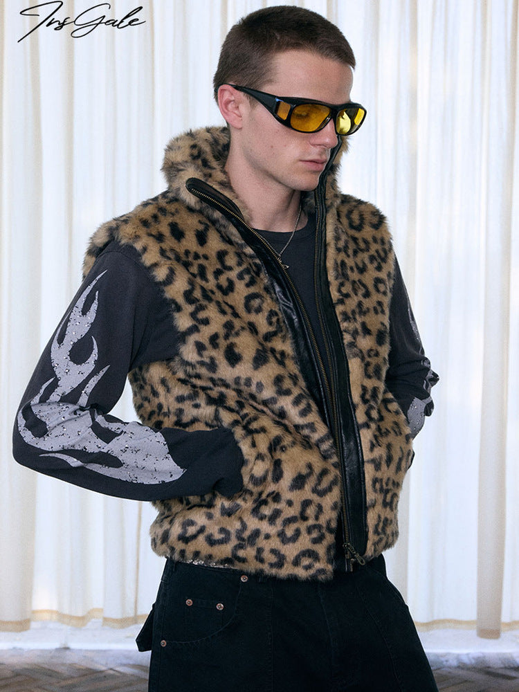 InsGale 25AW 豹紋拼仿皮棉服背心