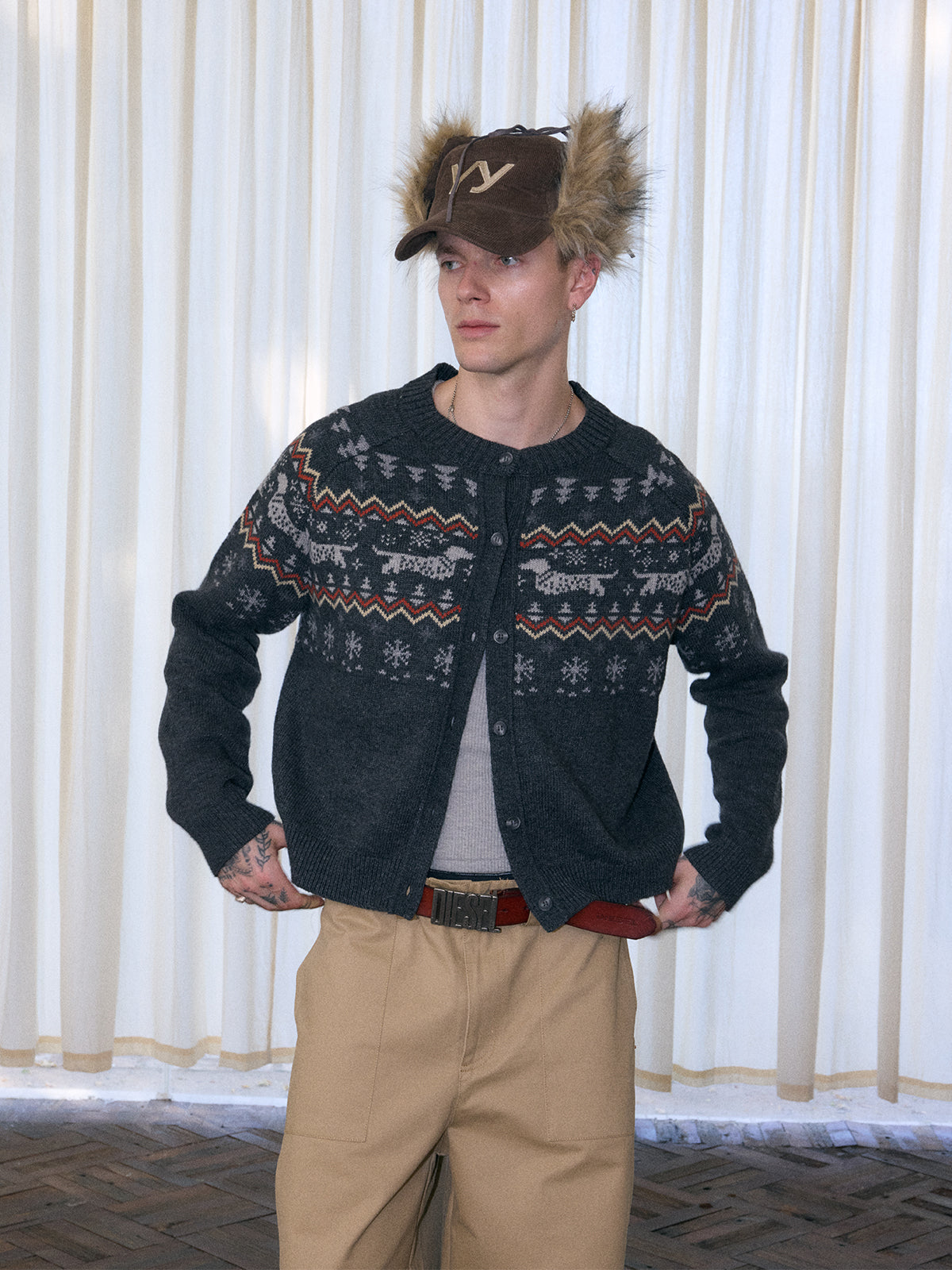 InsGale 25AW 費爾鳥臘腸狗針織短款羊毛開衫毛衣