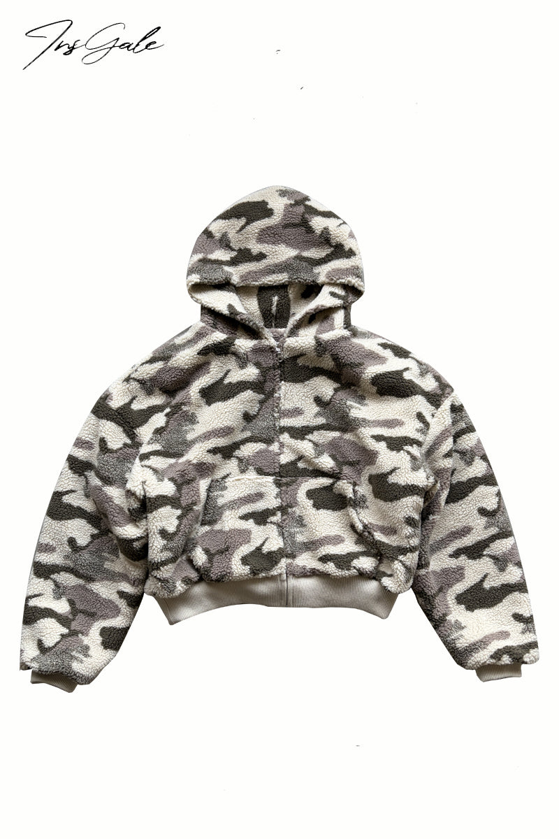 InsGale 25AW 600G重磅灰白迷彩羊羔毛拉鍊外套